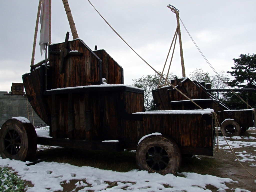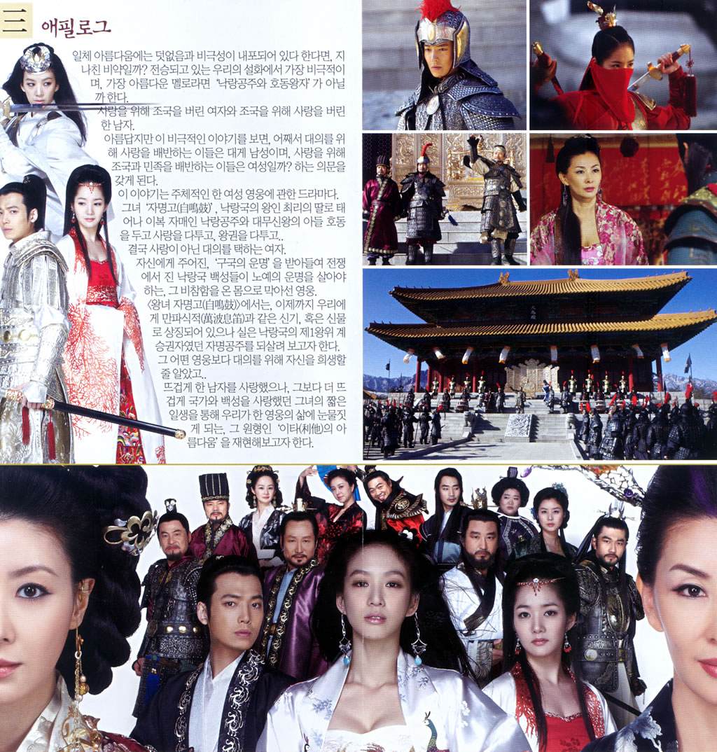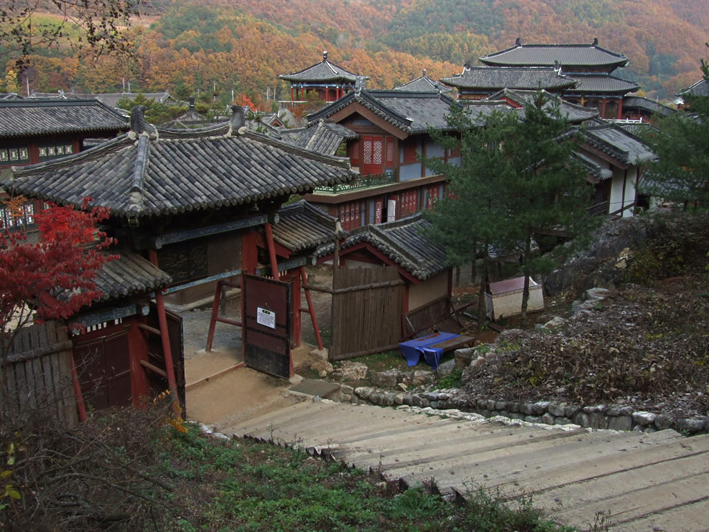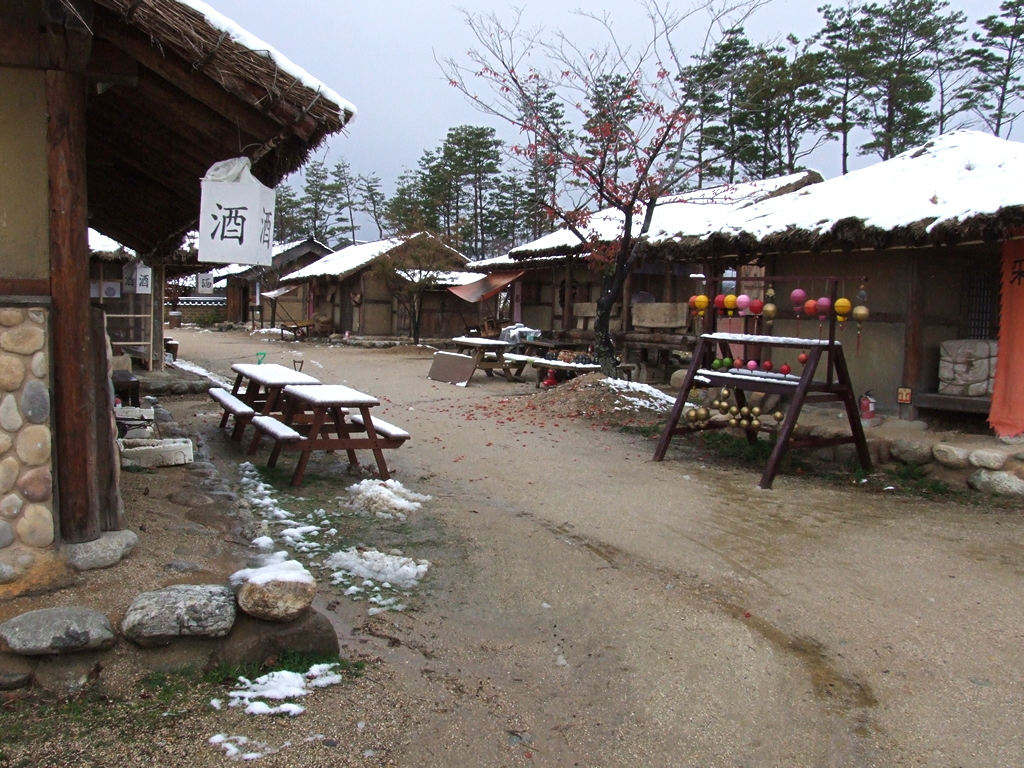 Nepřehlédnutelným žánrem korejské televize je tzv. drama. Mám na mysli historické drama čerpající náměty z života korejských dynastií. Tento žánr vám ale učaruje zřejmě jen krásnými dobovými obleky a maximálně vás přiměje, abyste přece jen navštívili některé z filmových městeček (doslova „filming area for drama“), která v Jižní Koreji vyrůstají specielně pro natáčení. Ovšem nečekejte žádné provizorně upravené přenosné buňky. Takové filmové městečko je jako pravé. Najdete tam vše, čím by asi kdysi žilo: dobové obydlí pro chudinu i vládce, trhy, zahrady, ale dokonce i budhistické chrámy, obranné valy i říčky linoucí se podél promenád. Pravda, vodnímu toku tu přirozenost moc nevěříte. Stejně tak umělost městečka prozrazuje pár atrakcí pro turisty, kde se můžete vyfotit přímo se známým korejským hercem, tedy s jeho fotografií v životní velikosti. Ale i tak je na co se dívat. A přemýšlet, kolik to tak asi všechno muselo stát.