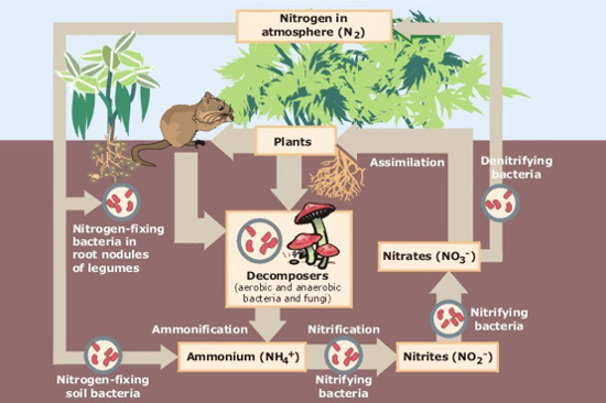 V severoamerických jehličnatých lesích je hlavní živinou, která limituje růst rostlin, dusík. Do podoby "stravitelné" pro rostliny tento prvek převádějí půdní bakterie, které v takzvaných nitrifikačních procesech oxidují amoniak (NH3) na dusitany (NO2) a dusičnany (NO3). Výzkumníci z Montanské univerzity zkoumali složení bakterií z lesní půdy, přes kterou se přehnal lesní požár a která obsahuje ložiska dřevěného uhlí.
