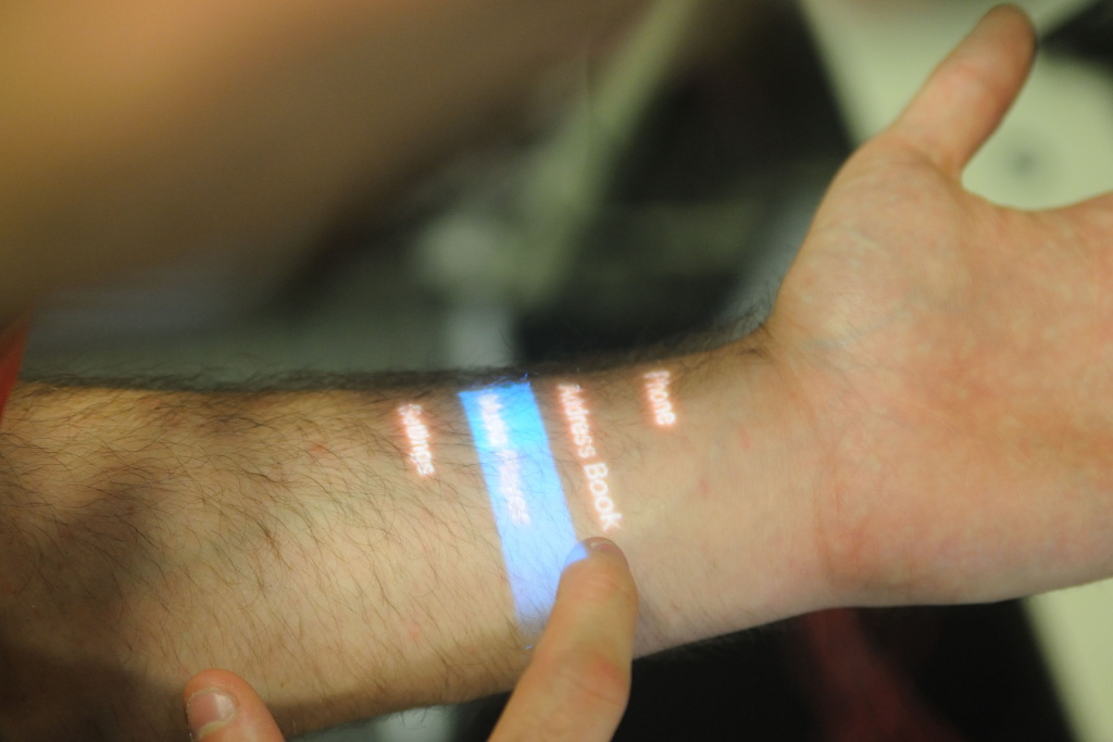 Malé mobilní počítače s sebou přinášejí malé rozměry displejů i klávesnic. A někdy je obtížné s těmito malými rozhraními pracovat. Řada firem se problém snaží řešit pomocí tzv. virtuálních klávesnic. Ty se promítají např. na desku stolu či zeď vedle mobilního telefonu. Tým odborníků z Carnegie Mellon University a výzkumné laboratoře Microsoftu v Redmondu vyvinul virtuální rozhraní pro kapesní a mobilní elektroniku. Jmenuje se Skinput a promítá přímo na ruku uživatele.